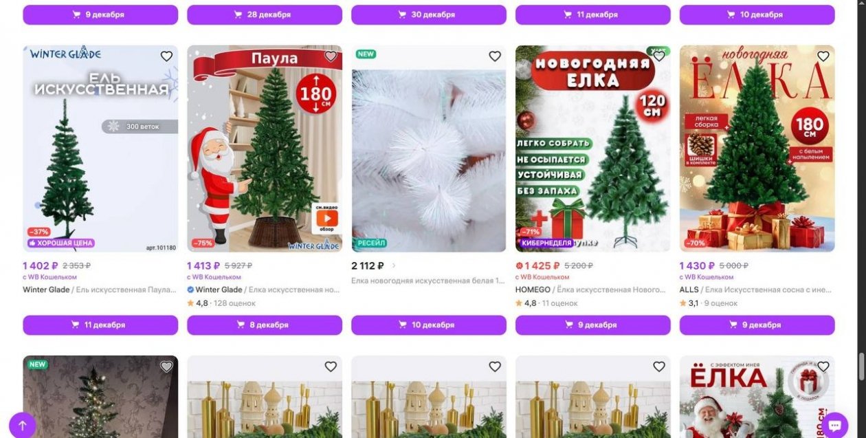 В среднем сегменте на WB покупатели выделяют российскую ёлку за 5856 рублей. Судя по отзывам, она пышная, легко собирается и при правильной расправке веток выглядит "как настоящая".