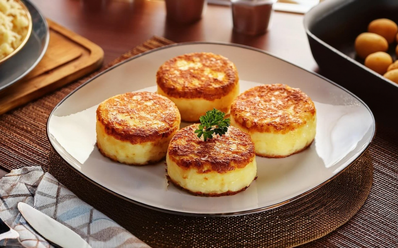 Представьте: золотистая корочка, нежное картофельное тесто и горячий, тянущийся сыр внутри. Это не пицца и не чизбургер — это картофельные сырники, простое, но очень уютное блюдо, которое одинаково хорошо идёт и на завтрак, и как гарнир к котлете, и как самостоятельный ужин с чашкой сметаны.