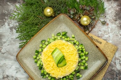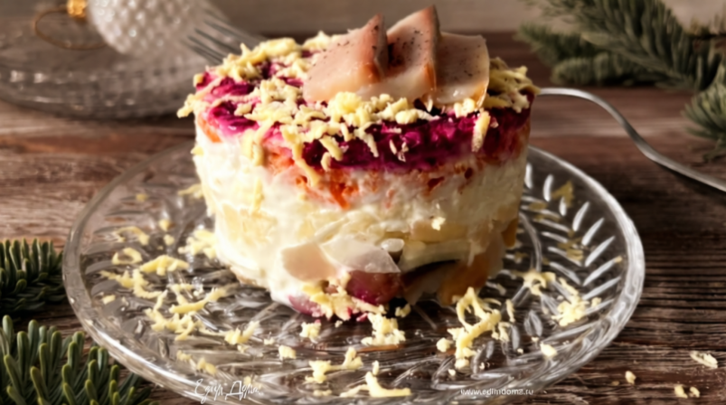 Этот салат — современная версия любимой "шубы", в которой классическую сельдь заменяет скумбрия холодного копчения. Нежные слои отварных овощей, сливочный майонез и выразительный дымный вкус рыбы создают гармоничное сочетание, знакомое и в то же время новое. Такой салат станет ярким акцентом на праздничном столе и приятно удивит даже тех, кто ценит классику.