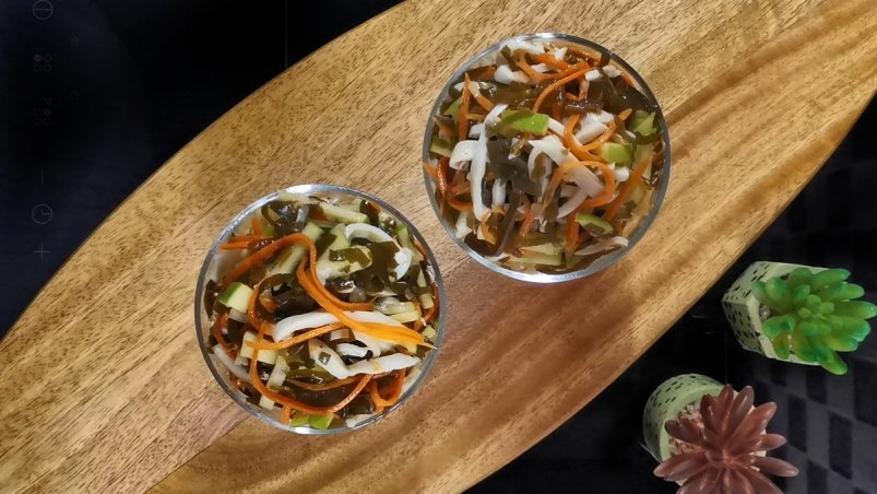 С первого вкуса сложно понять, что именно делает его таким особенным. Свежесть яблока, хруст сырой моркови, нежные кальмары, морская капуста и лёгкий аромат чеснока создают необычный, но очень гармоничный ансамбль. Многие до последнего не могут угадать секретный ингредиент.