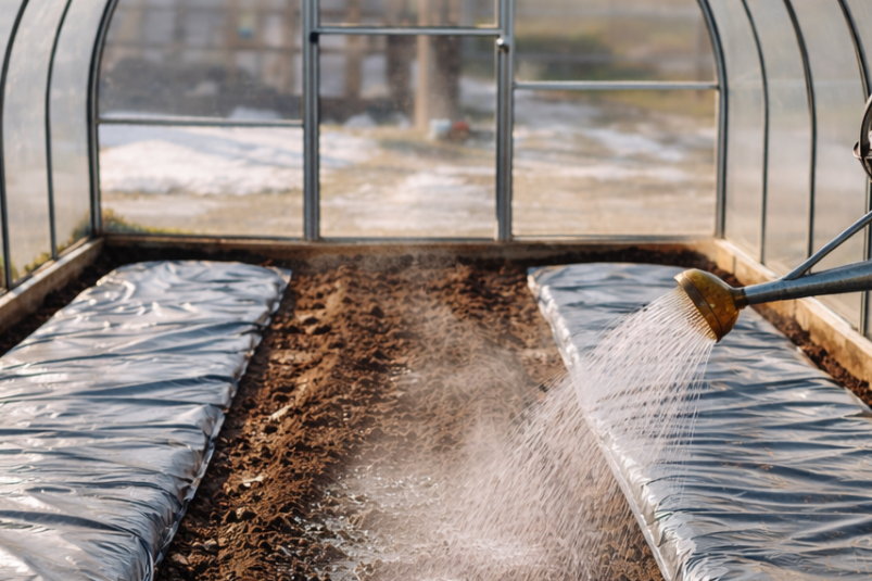 - Накройте землю чем-нибудь тёмным. Чёрная плёнка или специальная ткань помогут земле быстрее нагреться от солнца.