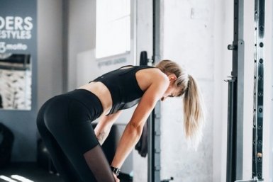 Лягте на спину, согните ноги в коленях. Разведите руки в стороны, затем согните в локтях так, чтобы локти касались пола. Поднимите предплечья, сожмите кулаки, как будто держите что-то тяжёлое.