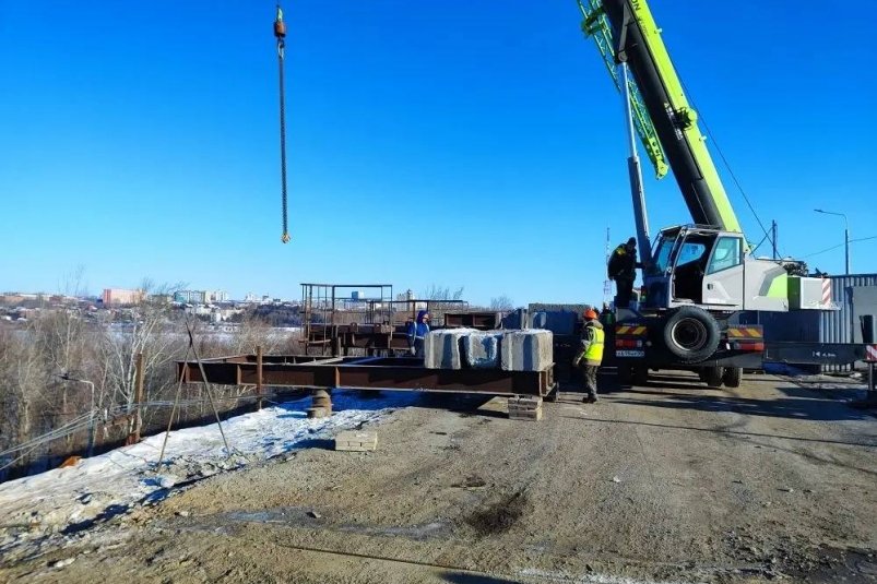 Капитальный ремонт сооружения продолжается в привычном режиме. В две смены специалисты подрядной организации ООО "СтройТраст" выполняют демонтаж на левой половине моста, а в подмостовом пространстве занимаются ремонтом металлических конструкций пролётных строений и восстановлением поверхностей бетонных опор.