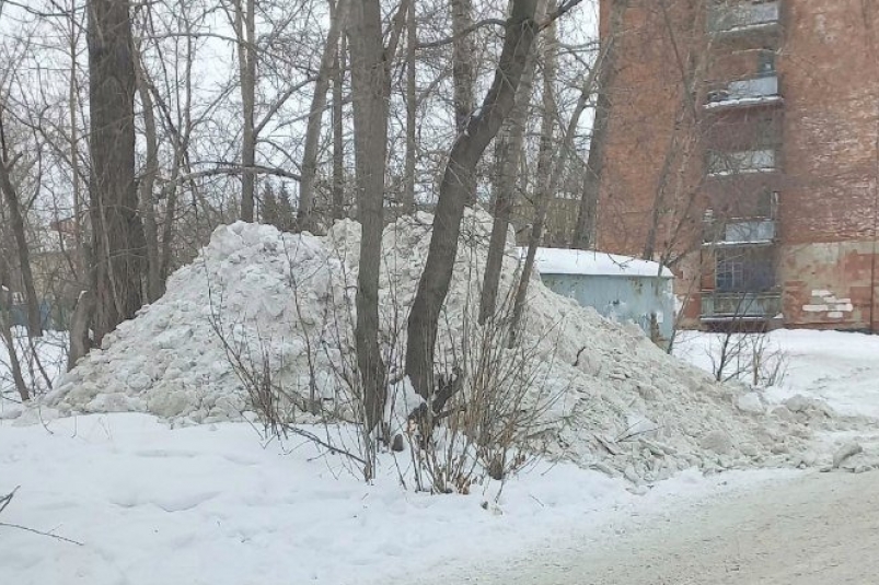 "Три дня назад здесь почистили снег, но вместо вывоза просто сгребли его в огромные кучи и оставили. Снег не вывозится уже 3-й день. Согласно правилам благоустройства, складирование снега на придомовой территории после уборки недопустимо. Просьба обратить на это внимание и чтобы ответственные службы оперативно организовали вывоз снежных масс".