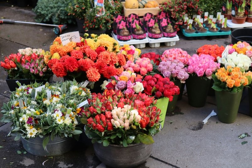 Стабильным спросом пользуются ирисы и хризантемы — как кустовые, так и одноголовые. Среди горшечных растений популярны гиацинты, которые часто приобретают в качестве альтернативы срезанным цветам.