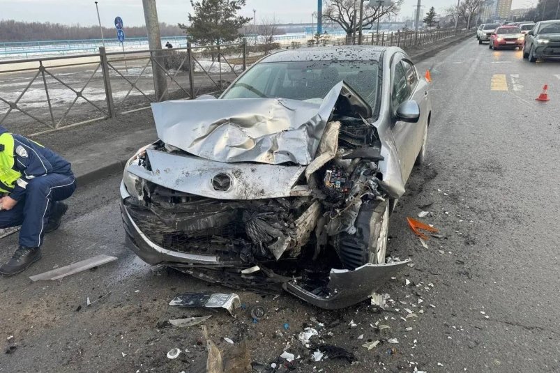 OmskMedia, 23 марта. В Центре Омска произошло страшное ДТП с участием двух автомобилей. Как сообщили в полиции города, в районе Иртышской набережной около 7 часов утра женщина за рулем "Мицубиси" выехала на встречную полосу и столкнулась с автомобилем "Мазда", который двигался в противоположном направлении.