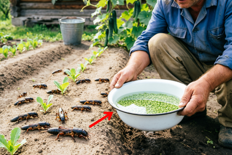 Готовые отравленные половинки разбрасываются по огороду. Ключевое правило: применять метод необходимо во время вспахивания или перекопки, чтобы горох гарантированно оказался в земле на глубине около 15 сантиметров.