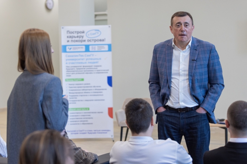 Кроме того, на встрече обсуждались образовательные перспективы. Студентка третьего курса Мария Петрова поинтересовалась развитием СахГУ. Валерий Лимаренко отметил, что университет стал опорным вузом "Газпрома", что открывает студентам доступ к практике и трудоустройству на шельфовых проектах. Совместно с МФТИ и Бауманским университетом ведутся разработки в сфере водородной энергетики.