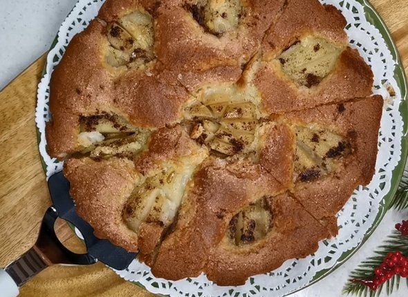 35–40 минут при 180 °C. Груши в процессе запекания становятся невероятно нежными, почти кремовыми, а тесто остаётся воздушным и пористым.