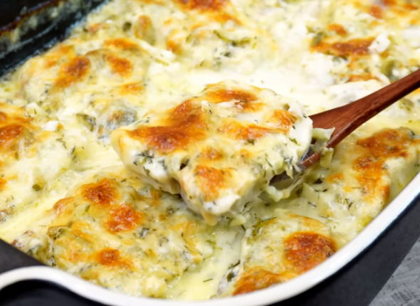 Главный лайфхак этого рецепта — маринованный огурец прямо в соусе. Он даёт лёгкую кислинку, свежесть и не даёт рыбе пересохнуть в духовке. А сметана с чесноком и укропом делают блюдо по-домашнему уютным. Рецепт от канала "Готовим с Калниной Натальей" на платформе Дзен (12+).