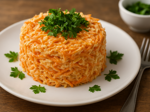 OmskMedia, 30 декабря. Когда нужно приготовить что-то быстро, красиво и вкусно, салат "Лисичка" становится идеальным выбором. Он сочетает в себе нежное куриное филе, пикантную морковь по-корейски и мягкую сырную нотку. Приготовление занимает всего 10–15 минут, если все ингредиенты подготовлены заранее. Яркий, аппетитный и сытный, салат понравится и взрослым, и детям, а его праздничная подача украсит любой стол. Рецепт от канала "REGIONS.ru | Главное" на платформе Дзен (12+).