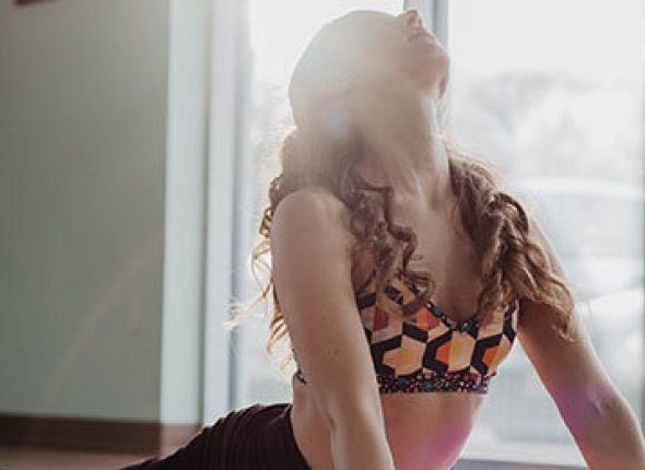 Лёжа на спине, стопы на полу, поднимайте таз на выдохе, опускайтесь на вдохе.