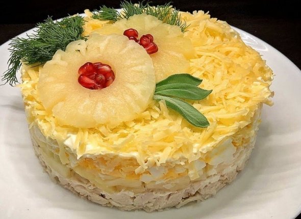 OmskMedia, 14 января. Этот слоёный салат с курицей и ананасами у нас готовят не "просто так". Если на кухне появляется форма для слоёных салатов — значит, будет повод. И почти всегда — открытая банка ананасов, из которой кто-нибудь обязательно отпьёт сироп, пока режется курица. Рецепт от канала "Кулинарный беспредел" на платформе Дзен (12+).