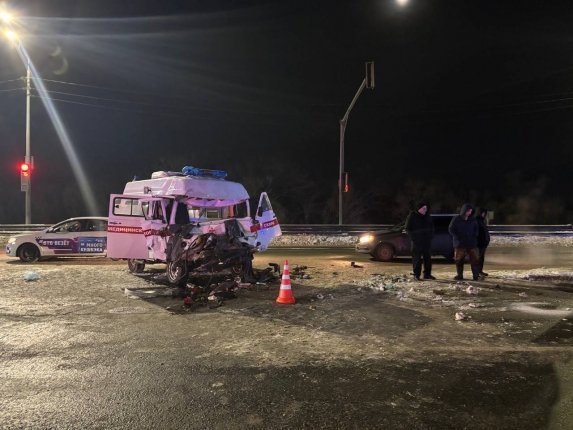 От полученных травм пациент скончался. Двое фельдшеров бригады скорой помощи и водитель автомобиля получили травмы и были доставлены в медицинское учреждение. О характере их травм и состоянии официально не сообщается.