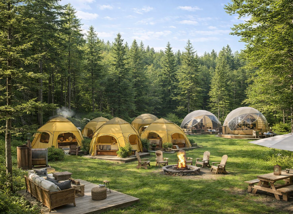 Ключевая роль в экономической модели проекта отведена глэмпингу — комфортабельным кемпингам для туристов. Помимо глэмпинга, потенциальный концессионер рассматривает размещение и других культурно-досуговых объектов. Инженерно-технический раздел концепции предусматривает сохранение естественного ландшафта с минимальным вмешательством в лесной массив.