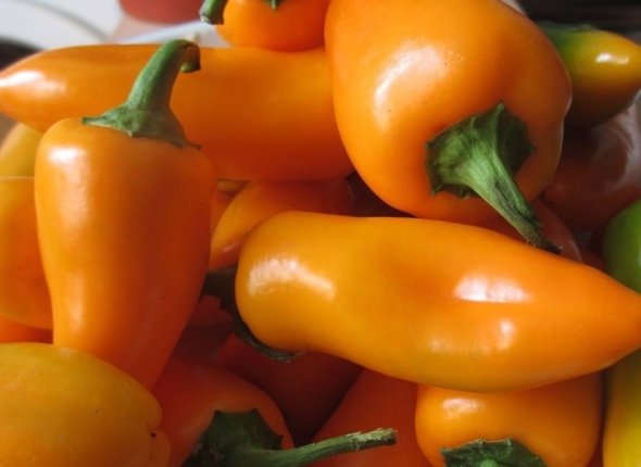 "Остряк" — неприхотливый сорт с ярко-красными конусовидными перчиками (5–8 г). Куст около 60 см, вегетация 100–115 дней. Подходит для ежедневного "щипания" по мере созревания.