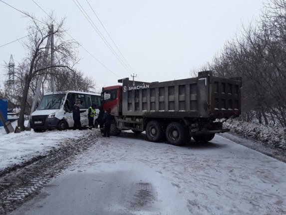 OmskMedia, 5 февраля. В Омске 5 февраля около 13:00 произошло серьезное дорожно-транспортное происшествие на улице 1-й Заречной. Большегрузный автомобиль "Шахман" выехал на встречную полосу и столкнулся с пассажирской "ГАЗелью Некст", следовавшей по маршруту № 386 "Учхоз — Амур-2".