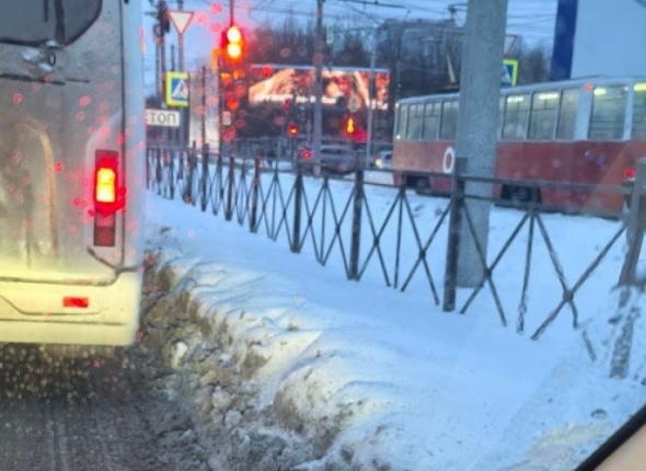 По словам автора поста, в крайней правой полосе на участке между улицами Маяковского и Масленникова на протяжении всей зимы не проводится уборка снега: