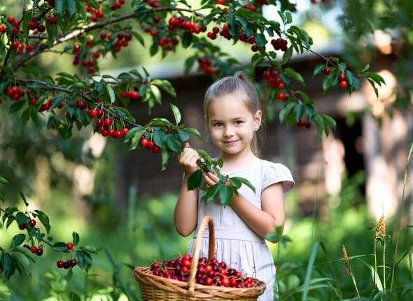 Первая в списке — вишня Жуковская отечественной селекции. Дерево вырастает не выше 3,5 метра с густой, но умеренно загущённой кроной. Сорт неприхотлив: нормально переносит почти любые погодные условия, за исключением затяжных дождей. Ягоды крупные (4–6 г) с классическим кисловатым вишнёвым вкусом.