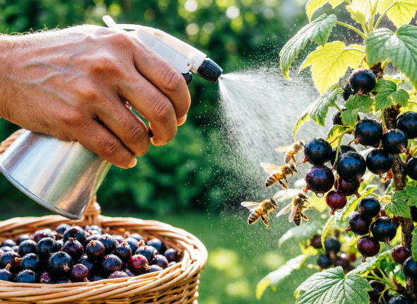 Главная хитрость сезона, которая привлекает насекомых-опылителей: во время цветения опрыскайте кусты сладким раствором — 1 ст. ложка мёда на 1 литр воды. Пчёлы летят на запах как на пожар, опыление становится тотальным, а ягод завязывается заметно больше.